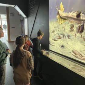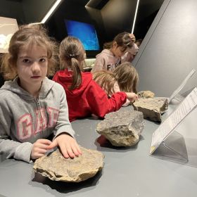 7 grudnia uczniowie klasy 3b odwiedzili kielecki Geopark. Dzieci razem z przewodnikiem zwiedzały wystawę Chronos, a następnie w kilkuosobowych zespołach uczestniczyli w grze terenowej, dzięki której dowiedzieli się jak wyglądała geologiczna przeszłość regionu świętokrzyskiego. Uczniowie korzystali z licznych interaktywnych stanowisk, gdzie mogli zobaczyć modele, skały, minerały i skamieniałości, a ponadto poznać procesy zachodzące na powierzchni Ziemi i w jej wnętrzu.