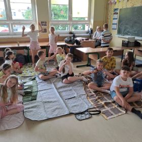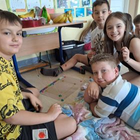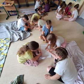 Dnia 29 maja uczniowie klasy 2b brali udział w imprezie klasowej z okazji Dnia Dziecka. Początkowo zabawa miała odbyć się na dworze, ale z powodu deszczu zostaliśmy w sali. Dzień ten był pełen radości i zabawy. Pomimo niesprzyjającej pogody, nikt nie stracił dobrego humoru. Rozłożone w klasie kolorowe koce, przygotowane przez rodziców pyszne smakołyki i pomysły na miłe spędzenie czasu, wprawiły wszystkich w ogromną radość . Na kocach odbywały się różne gry i zabawy, które dostarczały wszystkim mnóstwo śmiechu. Salę wypełniła atmosfera wspólnoty i beztroski, a dzieci cieszyły się swoim świętem, pokazując, że najważniejsza jest dobra zabawa, niezależnie od okoliczności.