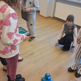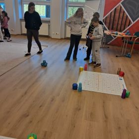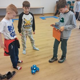 Uczniowie klasy 2a uczestniczyli w lekcji programowania z robotami Dash i Dot w Wojewódzkiej Bibliotece Publicznej w Kielcach.