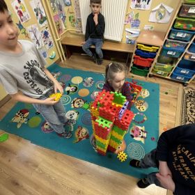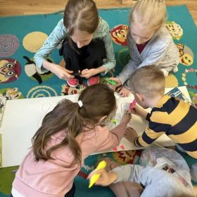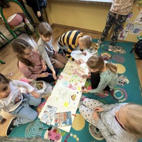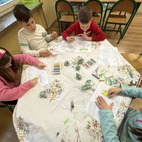 W ubiegłym tygodniu w naszej świetlicy poczuliśmy przedwiosenny powiew świeżości, a złociste promienie słońca poprawiały nam nastroje i zwiększały motywację oraz zapał do działania. Stworzyliśmy kolorowy plakat ukazujący oznaki zbliżającej się wielkimi krokami wiosny. Rozmawialiśmy także o roli kobiet we współczesnym świecie, redagowaliśmy życzenia z okazji Dnia Kobiet i Mężczyzn, mapę skojarzeń związaną z tymi świętami, jak również wykonaliśmy laurki z wykorzystaniem kredek pastelowych olejnych. Zgodnie z naszą tradycją we wtorkowy poranek urządziliśmy wspólne czytanie na dywanie, podczas którego razem z uwielbianymi przez dzieci bohaterami literackimi rozwiązywaliśmy zagadkę detektywistyczną. Uwzględniając prośby zarówno młodszych, jak i starszych dzieci zorganizowane zostały zabawy animacyjne oraz zabawy muzyczno – ruchowe.