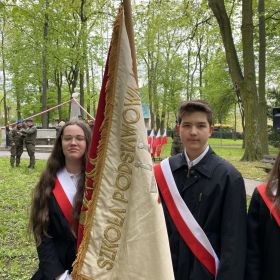 W środę 3 maja opiekunowie Samorządu Uczniowskiego wraz z delegacją uczniów i szkolnym sztandarem udali się do kieleckiego parku pod pomnik Stanisława Staszica na uroczystości obchodów rocznicy uchwalenia Konstytucji 3 Maja. Wraz z innymi pocztami odśpiewaliśmy „Mazurka Dąbrowskiego”, wystrzelona została salwa honorowa, po czym liczne delegacje polityków i żołnierzy złożyły kwiaty pod pomnikiem Stanisława Staszica. Po zakończeniu uroczystości większość osób skusiła się na ciepłą grochówkę, która była świetnym posiłkiem w ten chłodny dzień.