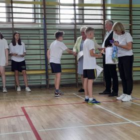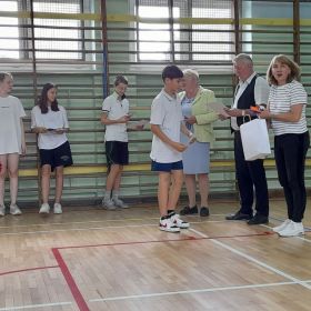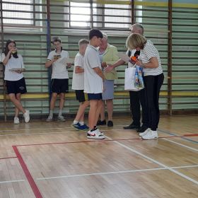 W czwartek 6 czerwca 2024 r. w sali gimnastycznej naszej szkoły odbyły się Mistrzostwa Szkoły w badmintonie. Do zawodów zgłosiło się dziewięcioro zawodników i zawodniczek z klas 4 – 7. Rywalizowali ze sobą w systemie grupowym i w systemie „każdy z każdym”. Największymi umiejętnościami i talentem wykazali się: Wiktoria Rybak z klasy 7b (I miejsce), Kacper Sularz z klasy 5b (II miejsce) i Wiktor Bartocha z klasy 5b (III miejsce). Wszyscy zawodnicy zostali nagrodzeni dyplomami oraz upominkami. Zwycięzcom gratulujemy i zapraszamy wszystkich chętnych uczniów na zajęcia badmintonowe, a także do rywalizacji za rok.