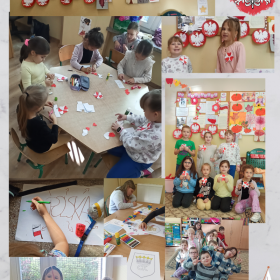 Ukończywszy misję rozwoju lokalnego patriotyzmu postanowiliśmy rozszerzyć jego zakres, więc zastanawialiśmy się, czym dla nas jest Ojczyzna i niepodległość. Wzbogaciliśmy wiedzę o położeniu geograficznym Polski, głównych rzekach, morzach, górach i największych miastach. Dla utrwalenia symboli narodowych Polski wykonaliśmy liczne prace plastyczne rozwijające motorykę małą i rozwiązywaliśmy zagadki o naszym kraju. Zwieńczeniem patriotycznych zajęć było wykonanie kotylionów w narodowych barwach.