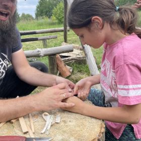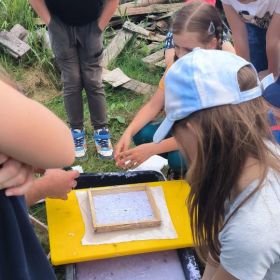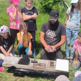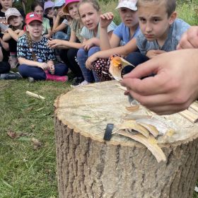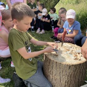 Warsztaty rozpoczęły się od nauki rozpalania ognia bez użycia zapałek. Do tego celu wykorzystywane było krzesiwo i kora brzozy. Każdy z uczestników zajęć mógł oczywiście spróbować swoich sił w tym niełatwym zadaniu. W międzyczasie prowadzący warsztaty dzielił się z uczniami cennymi wskazówkami dotyczącymi tego co w lesie można zjeść, jak pozyskać wodę pitną, czy gdzie się schronić. Kiedy w końcu udało się rozpalić ognisko, uczniowie upiekli kiełbaski, które wszystkim smakowały jak najlepsza uczta. Ponadto dzieci miały do wykonania jeszcze szereg innych zadań, takich jak: filtrowanie wody, poszukiwanie lisiej nory, nauka czerpania papieru, wykonywanie obrazków techniką drzeworytu. Były to trudne zadania, ale dzięki współpracy i determinacji udało się wszystko zrealizować.