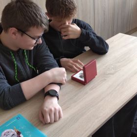 W środę 7 czerwca uczniowie klasy VII b i VIb uczestniczyli w zajęciach zorganizowanych przez przedstawicieli Narodowego Banku Polskiego na temat historii pieniądza. Obejrzeli prezentacje o okolicznościach powstania pieniądza, zobaczyli kilkanaście rodzajów dawnych płacideł oraz nowoczesnych banknotów i sposobów ich zabezpieczeń. Dowiedzieli się także , skąd wzięły się w języku polskim frazeologizmy słona cena oraz słono za coś płacić.