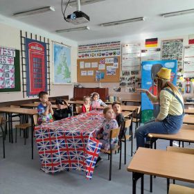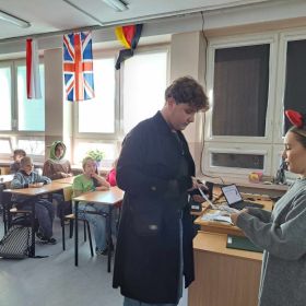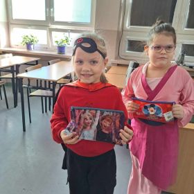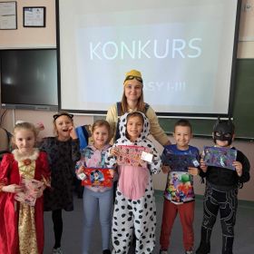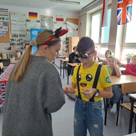 We wtorek 5.11.2024 odbył się konkurs języka angielskiego z okazji Dnia Postaci z Bajek. Pani Izabela Jończyk-Dzieciuch wraz z Panią Dominiką Stradowską przygotowały prezentację o sławnych postaciach z bajek w języku angielskim oraz przedstawiły różnicę w dubbingu i tłumaczeniu tytułów. Dziękujemy uczestnikom za zaangażowanie i piękne stroje!