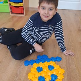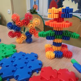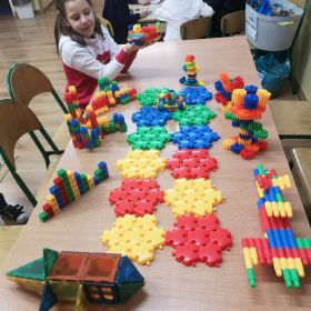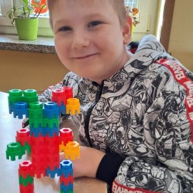 W naszej świetlicy odbywają się cykliczne zajęcia, podczas których wykorzystujemy różnego rodzaju klocki konstrukcyjne, zakupione w ramach programu "Laboratoria Przyszłości". Jest to inicjatywa edukacyjna realizowana przez Ministerstwo Edukacji i Nauki we współpracy z Centrum GovTech w Kancelarii Prezesa Rady Ministrów, której celem jest wsparcie szkół podstawowych w budowaniu wśród uczniów kompetencji przyszłości z tzw. kierunków STEAM (nauka, technologia, inżynieria, sztuka oraz matematyka). Podczas zajęć dzieci tworzą budowle z dostępnych wzorów, a także budują skomplikowane konstrukcje według własnych pomysłów. W ten sposób rozwijają motorykę małą oraz wyobraźnię przestrzenną, a także ćwiczą pamięć i koncentrację uwagi. Zajęcia te sprawiają Świetliczakom dużo radości.