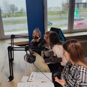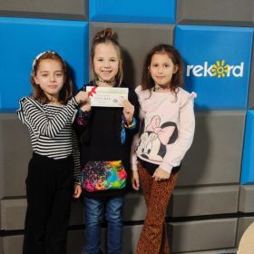 W piątek przedstawicielki klasy 2b: Hania Nina i Zuzia odwiedziły siedzibę radia Rekord, aby odebrać Voucher podarunkowy. Była to również doskonała okazja żeby zobaczyć studio radiowe i z bliska przyjrzeć się pracy radiowców. Nina udzieliła nawet krótkiego wywiadu i przez chwilę wszyscy słuchacze radia mogli ją usłyszeć.