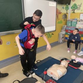 W ramach obchodów Dnia Numeru Alarmowego 112 uczniowie klas I-IV uczestniczyli w zajęciach z zakresu udzielania pierwszej pomocy. Spotkanie miało na celu kształtowanie pozytywnych i bezpiecznych postaw oraz zapoznanie dzieci z podstawowymi czynnościami ratowniczymi. Po tej lekcji uczniowie wiedzą już, jak należy reagować, kiedy ktoś potrzebuje pomocy.