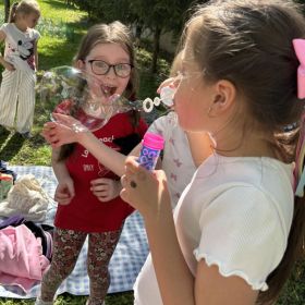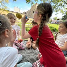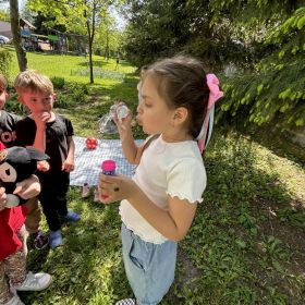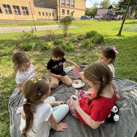 Korzystając z uroków majowej pogody staramy się spędzać jak najwięcej czasu na świeżym powietrzu, dlatego regularnie organizujemy wyjścia na plac zabaw, gdzie dzieci uczestniczą w rozmaitych zabawach ruchowych i dotleniają organizmy. Naszą ulubioną podwórkową rozrywką jest wspólne piknikowanie, podczas którego słuchamy muzyki, śpiewamy, tańczymy, puszczamy bańki mydlane, spożywamy smaczne przekąski i prowadzimy interesujące rozmowy. 😊