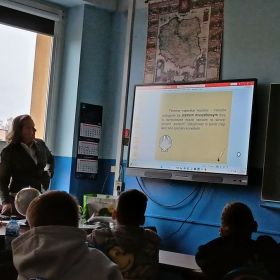 13 listopada 2024 r. nasza szkoła miała przyjemność gościć panią Emilię Pobochę z Pedagogicznej Biblioteki Wojewódzkiej w Kielcach, która przeprowadziła warsztaty o historii pisma i książki dla uczniów klasy VI a i VI b.