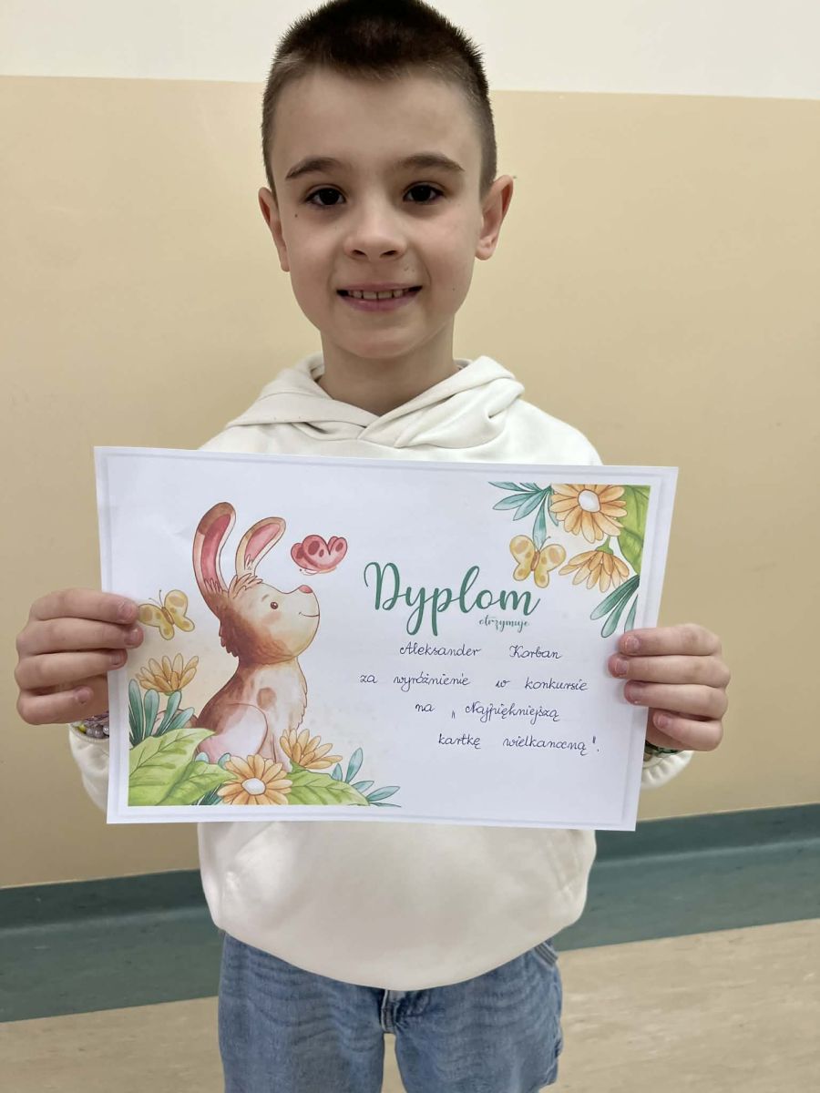Z przyjemnością informujemy o rozstrzygnięciu szkolnego konkursu plastycznego dla uczniów klas 1–3 pt. „Najpiękniejsza kartka wielkanocna".