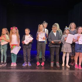 Natalia Młynarczyk uczennica klasy 3b wzięła udział w finale XI Międzyszkolnego Konkursu Recytatorskiego i wystąpiła na scenie kieleckiego Teatru Lalki i Aktora Kubuś. Tegoroczny konkurs odbywał się pod hasłem „Sport – to lubię najbardziej”, a Natalka zaprezentowała wiersz Urszuli Krajewskiej Szeligowskiej pt: Sport. Profesjonalizm naszej uczennicy i znakomitą interpretację utworu docenili jurorzy przyznając jej wyróżnienie w swojej kategorii wiekowej. Gratulujemy i życzymy dalszych sukcesów!