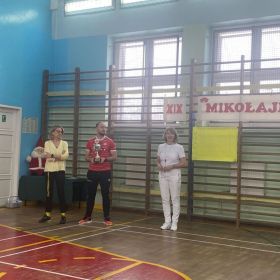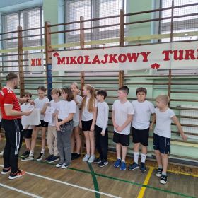 W piętek 7 grudnia w sali gimnastycznej odbył się XIX Mikołajkowy Turniej Gier i Zabaw. Uczniowie klas czwartych, piątych i szóstych walczyli o Puchar Dyrektora naszej szkoły. Rywalizowali w konkurencjach indywidualnych z piłkami i zespołowych: bieżnych, skocznych oraz rzutnych. Była również zabawa dla kibiców, a także zabawa niespodzianka: „zakręcona piłka nożna”, do której nikt wcześniej nie mógł się przygotować.