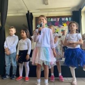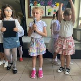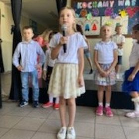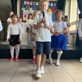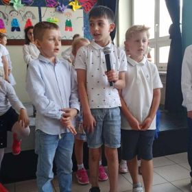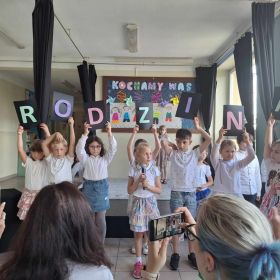 Dzień Rodziny to wyjątkowy czas zarówno dla rodziców jak i dla dzieci. To czas pełen wzruszeń, uśmiechu i radości. Z tej okazji , 5 czerwca uczniowie z klasy 1b zaprosili swoich najbliższych na uroczysty program artystyczny. Dzieci zaprezentowały swoje umiejętności recytatorskie i wokalne zarówno w języku polskim jak i angielskim. Porwały do tańca swoich rodziców, a rodzice dla swoich dzieci zaśpiewali zwrotkę piosenki w języku angielskim. Po części artystycznej przyszedł czas na uściski, całusy i wręczenie prezentów.