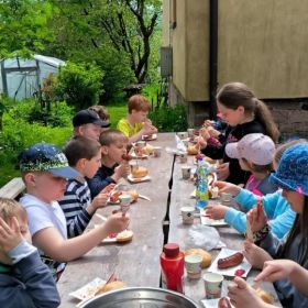 We wtorek uczniowie klas drugich odwiedzili „Szkołę wrażliwości” w Kapkazach. Pobyt w gospodarstwie rozpoczął się od przedstawienia „O Diable i Babie” inspirowanego legendami świętokrzyskimi. Po obejrzeniu inscenizacji uczniowie zostali podzieleni na 3 grupy, w których kolejno uczestniczyli w warsztatach ceramicznych, zielarskich i wypieku podpłomyków. Drugoklasiści mieli możliwość bliższego poznania pracy artysty ceramika i pod okiem instruktorki Pani Ewy Skowerskiej wykonali prace z gliny. Podczas spotkania z zielarką, dzieci poznawały rośliny, które posiadają lecznicze właściwości, zbierały wskazane przez Panią zielarkę zioła do woreczków zapachowych, a na koniec sporządziły ziołową herbatkę, którą później ze smakiem popijały, zajadając kiełbaski z ogniska. Uczniowie odwiedzili także zagrodę świętokrzyską gdzie własnoręcznie przygotowali pyszne podpłomyki. To był bardzo miły dzień, spędzony na świeżym powietrzu. Nie zabrakło zabaw w plenerze i kontaktu ze zwierzętami gospodarskimi. Dzieci zobaczyły jak wyglądało życie na wsi dawniej, a przyrodę poznawały różnymi zmysłami. Udział w zajęciach z pewnością pomógł w kształtowaniu wrażliwości i cierpliwości uczniów.