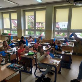 Z cyklu ,,Poznajemy zawody swoich rodziców" w czwartek klasa Ib zaprosiła do siebie mamę Szymona- Panią Paulinę Hersztek. Pani Paulina opowiedziała dzieciom o zawodzie logopedy oraz jakie narzędzia wykorzystuje w swojej pracy. Uczniowie mieli świetną okazję zobaczyć i spróbować jak poprzez zabawę można doskonalić swoje narządy artykulacyjne. Dzieci ćwiczyły swoje buźki i języki. Oprócz ćwiczeń narządów mowy, dzieci uczestniczyły również w zabawach sensorycznych. Na zakończenie Pani Paulina wręczyła każdemu dyplom i zestaw Małego Logopedy. Serdecznie dziękujemy Pani Paulinie za poświęcony czas i wspaniale przygotowane zajęcia!