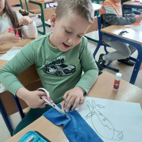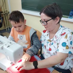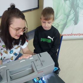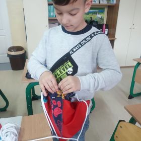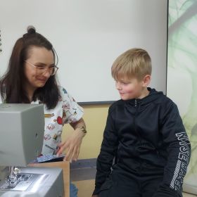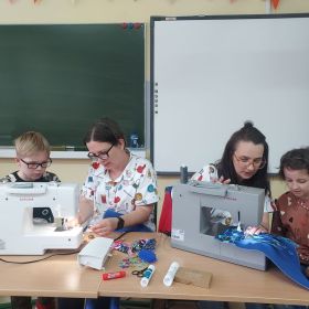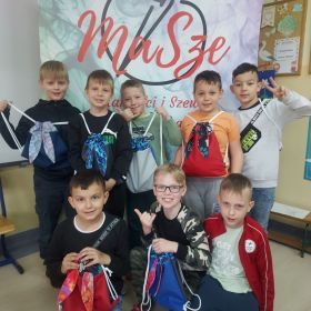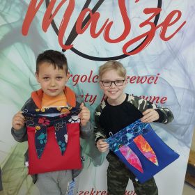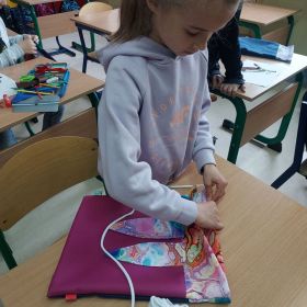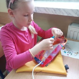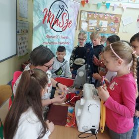 W minionym tygodniu klasa I b wzięła udział w warsztatach kreatywnych z szycia, organizowanych przez zespół MaSze. Uczniowie mieli okazję uszyć własnoręcznie samodzielnie zaprojektowany workoplecak. Dzieci świetnie radziły sobie przy maszynach oraz wykazały się niezwykłymi umiejętnościami w tym cierpliwością :) W oczekiwaniu na swoją kolej, każdy miał okazję stworzyć własną ,,wydzierankę materiałową" z różnych rodzajów tkanin. To była również świetna okazja do ćwiczenia integracji sensorycznej. Dzięki przesympatycznym Paniom prowadzącym miło spędziliśmy deszczowy poranek. Wspólne szycie okazało się strzałem w dziesiątkę!