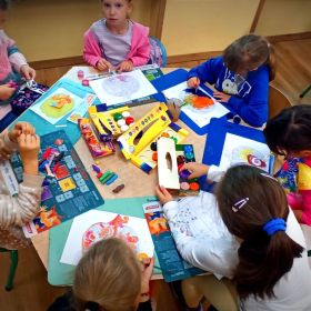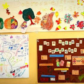 W drugim tygodniu października zajęliśmy się poszukiwaniem zaginionej Pani Jesieni. Pomocne w tym okazały się zabawy integracyjne z wykorzystaniem kart ruchowych. Ćwiczyliśmy motorykę małą podczas wypełniania jesiennych mandali i daliśmy się ponieść wodzy fantazji przy tworzeniu jesiennych opasek. Radośnie uczciliśmy także Dzień Edukacji Narodowej i z tej okazji przygotowaliśmy laurki z wykorzystaniem techniki malowania palcami.
