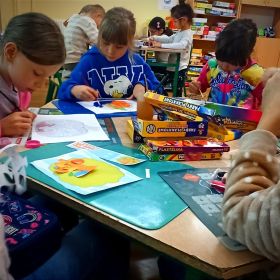 Październik w świetlicy rozpoczął się bardzo produktywnie i przyjemnie z racji tego, że obchodziliśmy Światowy Dzień Zwierząt. Przeprowadziliśmy bardzo ciekawe rozmowy uwrażliwiające na los zwierząt (zwłaszcza tych porzuconych, dla których obecnie trwa zbiórka darów). Odgadywaliśmy nazwy zwierząt na podstawie usłyszanych dźwięków, rozwiązywaliśmy tematyczne łamigłówki oraz tworzyliśmy dzieła plastyczne. Nie brakowało także zabaw ruchowych, manualnych i dramowych.