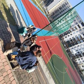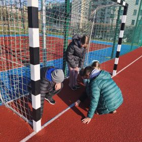 W ramach innowacji pedagogicznej "Matematyka w ruchu" uczniowie klasy 4b spędzili niezapomniane zajęcia na boisku szkolnym! Podzieleni na dwie rywalizujące grupy, poszukiwali i rozwiązywali zadania matematyczne ukryte na terenie szkoły. To była prawdziwa przygoda pełna emocji i odkryć!