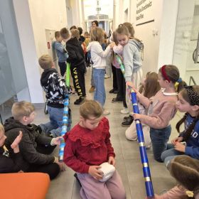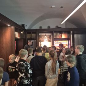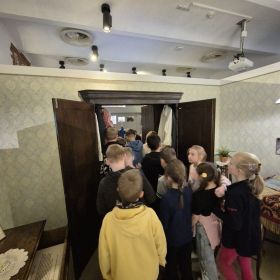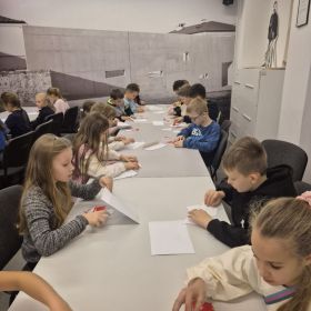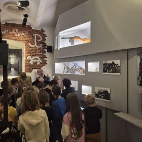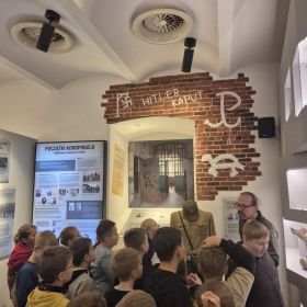 Kolejnym etapem wycieczki była wizyta w Ośrodku Myśli Patriotycznej i Obywatelskiej. Uczniowie mieli okazję poznać historię dawnego więzienia, które obecnie pełni rolę miejsca pamięci. Zwiedzili również wystawę stałą, która przybliżyła im wydarzenia związane z historią Polski i regionu. Na zakończenie uczestniczyli w warsztatach na temat symboli narodowych, gdzie dowiedzieli się o znaczeniu flagi, godła i hymnu, a także pogłębili swoją wiedzę o polskiej tożsamości narodowej.