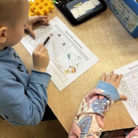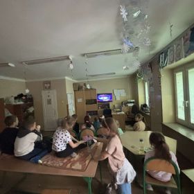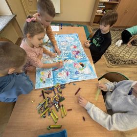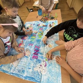 W trzecim tygodniu stycznia zorganizowaliśmy burzę mózgów dotyczącą pomysłów na spędzanie w ciekawy sposób ferii zimowych. Obejrzeliśmy edukacyjne filmy, w których zostały przedstawione najważniejsze zasady zachowania bezpieczeństwa podczas zimowych zabaw, utrwaliliśmy także numery alarmowe i sytuacje, w których są one wykorzystywane. Wykonaliśmy także pracę plastyczną – zimowe miasteczko oraz plakat XXL ,,Bezpieczne ferie’’. Nie zabrakło także weryfikacji nabytej wiedzy poprzez uzupełnienie kart pracy i wykonanie gier interaktywnych na forum grupy.