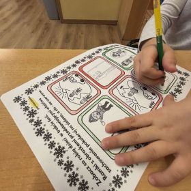 W nowym roku kalendarzowym na zajęciach świetlicowych postanowiliśmy podzielić się swoimi planami i postanowieniami noworocznymi. Uzupełniliśmy karty pracy, w których każdy umieścił konkretne cele, a następnie zaprezentowaliśmy je na forum grupy i szukaliśmy sposobów na osiągnięcie tych marzeń. Zajęliśmy się również tematyką emocji i nauczyliśmy się, że nie ma złych uczuć i emocji – wszystkie są nam potrzebne i uczą nas czegoś wartościowego. Klucz tkwi w sposobie ich okazywania. Dowiedzieliśmy się, jak możemy sobie poradzić w trudnych sytuacjach, kiedy odczuwamy złość, gniew, smutek, żal, zazdrość. Obejrzeliśmy drugą część kultowego dzieła pt. ,,W głowie się nie mieści’’ i porozmawialiśmy o emocjach przedstawionych w bajce i o sytuacjach, w których pojawiają się w naszym życiu codziennym. W humorystyczny sposób stworzyliśmy także przepisy na dobry nastrój i tutaj po raz kolejny Świetliczaki wykazały się niesamowitą kreatywnością i nieszablonowym myśleniem. Pobawiliśmy się w odpowiadanie na pytania o emocje i uczucia za pomocą przeczeń (czerwoną flagą) lub potwierdzeń (zieloną flagą).