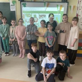 Saint Patrick's Day rozpoczął się od fascynującej lekcji historii, gdzie dzieci mogły dowiedzieć się wielu interesujących informacji na temat życia i dziedzictwa Świętego Patryka. Poprzez interaktywne prezentacje, piosenki i zabawne gry dydaktyczne, uczniowie zgłębiali tajniki irlandzkiej kultury i tradycji, jednocześnie rozwijając swoje umiejętności językowe.