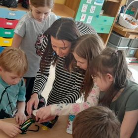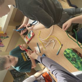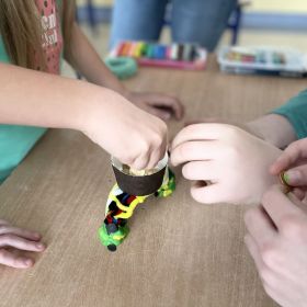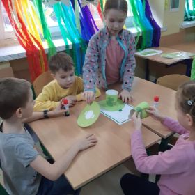 Uczestnicy warsztatów brali również udział w kreatywnych zabawach plastyczno - technicznych, podczas których mogli wykazać się swoimi umiejętnościami manualnymi. Uczniowie tworzyli wyroby nawiązujące do irlandzkiej tradycji świętowania Dnia Świętego Patryka, takie jak zielone kapelusze z kawałków papieru, twarze Leprechauna (irlandzkiego skrzata) z papierowych talerzyków, czy tęczowe mosty z wykorzystaniem plasteliny i kreatywnych kolorowych drucików.