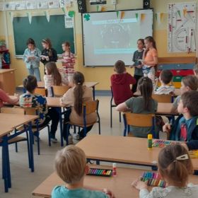 Nie mogło oczywiście zabraknąć także irlandzkiej muzyki. Dzieci śpiewały piosenki w języku angielskim co dostarczyło wszystkim wiele radości i śmiechu. Na zakończenie tego magicznego dnia odbyła się wielka zabawa, podczas której wszyscy uczestnicy mieli okazję wziąć udział w licznych konkursach, grach i quizach, sprawdzając swoją wiedzę na temat Irlandii i Świętego Patryka.