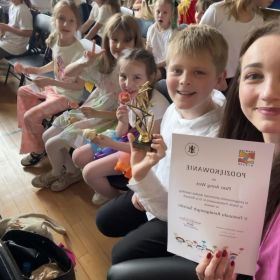 ,,Aż chce się wyruszyć do tego Waszego Świata, skoro nas tak pięknie zapraszacie’’ – takim komentarzem podsumowano występ naszych wspaniałych artystów. Podczas odbierania nagród wychowawczyni naszej świetlicy otrzymała wiele pochwał, wyrazów uznania i gratulacji od organizatorów, co dodatkowo utwierdza w przekonaniu, że to, nad czym pracowała z dziećmi od paru tygodni miało sens i obficie zaowocowało.