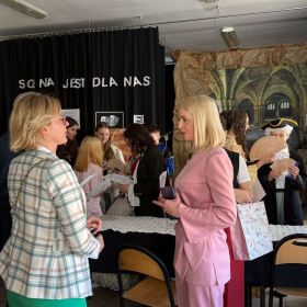 16 kwietnia 2025 r w naszej szkole odbyła się IV edycja Wojewódzkiego Konkursu Teatralnego „Scena jest dla nas”. Jak co roku celami konkursu było przede wszystkim kształcenie umiejętności publicznych wystąpień. Rozwijanie zdolności teatralnych, motywowanie do wystąpień publicznych oraz kształtowanie kompetencji osobistych, społecznych i obywatelskich. Honorowym Patronatem nasze przedsięwzięcie objęte zostało przez: Urząd Marszałkowski i Marszałka Województwa Świętokrzyskiego, Kuratorium Oświaty w Kielcach i Świętokrzyskiego Kuratora Oświaty, Świętokrzyskie Centrum Doskonalenia Nauczycieli w Kielcach oraz Wojewódzki Dom Kultury w Kielcach. W pracach Komisji Konkursowej wzięły udział: pani Magdalena Kurkowska – starszy wizytator Kuratorium Oświaty w Kielcach oraz pani Inga Pamuła – główny specjalista ds. współpracy z instytucjami kultury przy Wojewódzkim Domu Kultury w Kielcach.