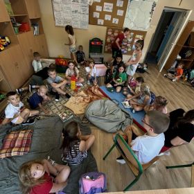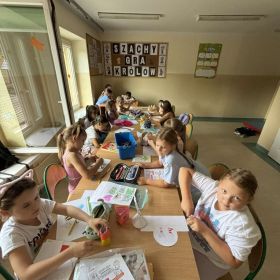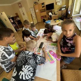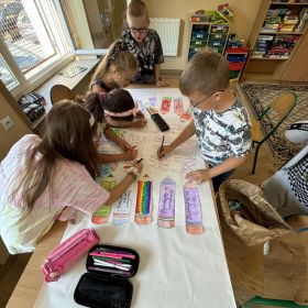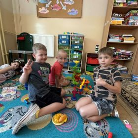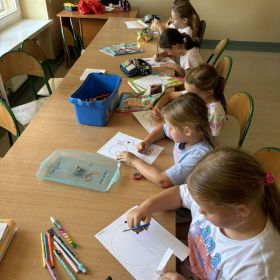 Na początku roku szkolnego postawiliśmy na stopniowe wdrażanie nowo przybyłych członków naszej świetlicowej społeczności w warunki i reguły u nas panujące. Zapoznaliśmy się z regulaminami i zasadami zachowania w świetlicy szkolnej. Rozmawialiśmy o konieczności poszanowania sprzętów, zabawek i gier znajdujących się w naszej sali oraz przestrzegania zasad zachowania porządku. Zdolni wychowankowie wykonali plakat przedstawiający kodeks zachowania w naszej wspaniałej świetlicy, po czym przeszliśmy do zabaw i gier integracyjnych grupę w celu nawiązywania i pielęgnowania nowych relacji interpersonalnych z uczniami z różnych klas. Dzieci przedstawiły graficznie swoje najpiękniejsze wspomnienia z minionych wakacji, po czym opowiedziały o tym, za czym będą najbardziej tęskniły. Wznowiliśmy kultywowanie naszej świetlicowej tradycji czytania dywanowego, co bardzo spodobało się również nowym członkom naszej krainy.