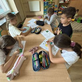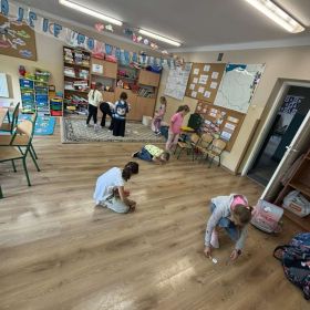 W naszej świetlicy poświęcamy wiele uwagi istotnym zagadnieniom, które mają wartość edukacyjną i kultywują określone postawy. Jednym z takich obszarów tematycznych jest ekologia i wszystko to, co jest z nią związane. W ubiegłym tygodniu przeprowadziliśmy serię zajęć poruszających problematykę dbania o nasze środowisko i przeciwdziałania niszczenia natury. Rozmawialiśmy o potrzebie dbania o naszą planetę, segregacji surowców wtórnych, wyjaśniliśmy pojęcia: ekologia, recykling, surowce wtórne, jak również obejrzeliśmy interesujące prezentacje multimedialne i filmy edukacyjne dotyczące tej tematyki. Podczas burzy mózgów dzieci wyszczególniły sposoby pomagania naszej planecie na co dzień. Nie zabrakło także zabaw dywanowych, w tym między innymi gry ,,Ja mam…Kto ma…?’’, obrazkowego głuchego telefonu z motywem ekologii oraz segregowania śmieci za pomocą spinaczy (co było wspaniałym treningiem motoryki małej). Na koniec zgodnie z życzeniem dzieci postanowiliśmy urządzić wspólne kolorowanie puzzli XXL ukazujących szczęśliwą Panią Ziemię.