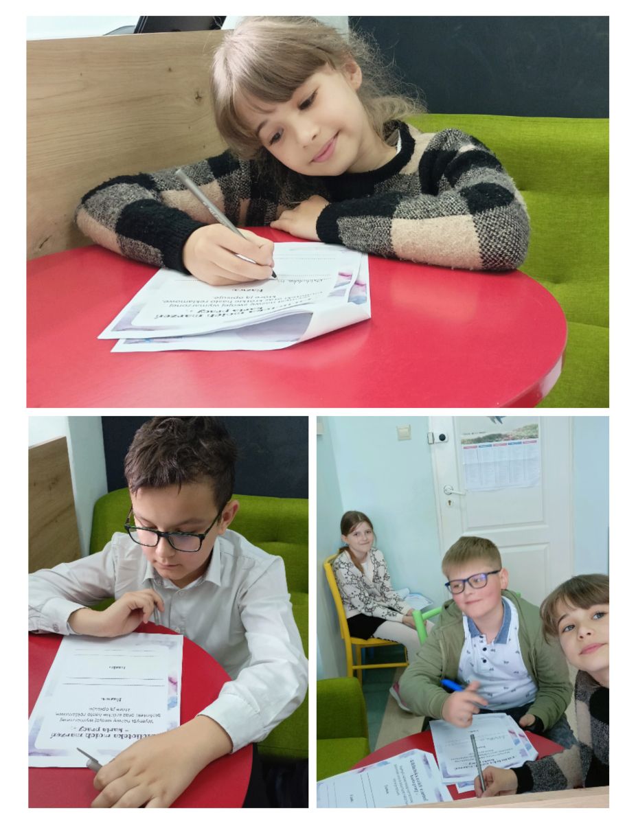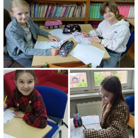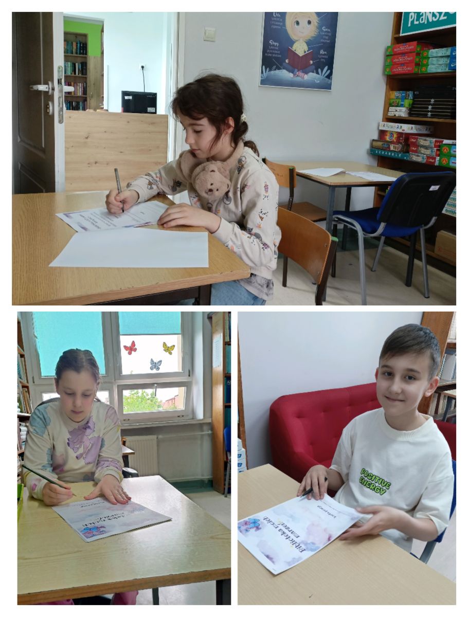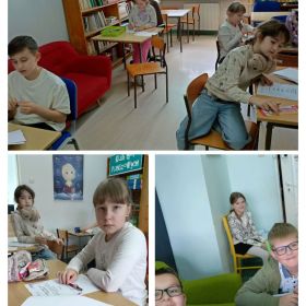 W dniach 8–15 maja obchodziliśmy Tydzień Bibliotek. Tegoroczne hasło akcji – „Biblioteka. Lubię tu być!” – stało się punktem wyjścia do wielu działań, w których uczniowie chętnie brali udział. Podczas zajęć dzieci miały okazję zastanowić się, czym dla nich jest biblioteka i co sprawia, że dobrze się w niej czują. Wśród wypowiedzi znalazły się m.in.: „Biblioteka to miejsce, gdzie mogę być sobą”, „Biblioteka to najlepsze miejsce”, „Tu mogę się wyciszyć i odpocząć". Uczniowie wypełniali specjalnie przygotowane karty pracy, w których dzielili się swoimi pomysłami na idealne miejsce do czytania i odpoczynku. Rozważały, kiedy biblioteka powinna być otwarta, jakie przestrzenie mogłyby się w niej znaleźć i co sprawiłoby, że byłaby jeszcze bardziej przyjazna.