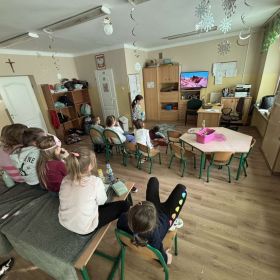 Końcówka grudnia upłynęła nam bardzo szybko i nim się zorientowaliśmy, nastała przerwa świąteczna. Przedtem jednakże zrealizowaliśmy w świetlicy cykl tematyczny dotyczący świąt Bożego Narodzenia oraz zimy. Porozmawialiśmy najpierw o cykliczności pór roku i zwróciliśmy szczególną uwagę na zmiany zachodzące w przyrodzie. Dowiedzieliśmy się, jakie tradycje i obrzędy świąteczne są kultywowane w obecnych czasach, a także wyjaśniliśmy, na czym one polegają. Nie zabrakło także swobodnych wypowiedzi o przygotowaniach do świąt, wspólnego kolędowania świetlicowego, uzupełniania kart pracy oraz prac plastycznych: wydzieranek zimowych, choinkowych puzzli XXL, gazetki tematycznej. Oprócz tego oglądaliśmy kultowy klasyk kinematografii – Epokę Lodowcową i wzięliśmy udział w zajęciach z wykorzystaniem narzędzi multimedialnych.