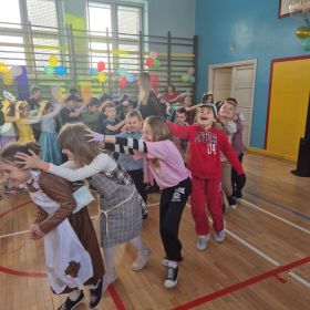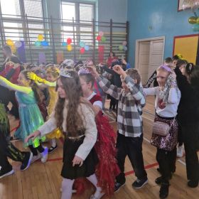 Jak co roku w okresie karnawału w naszej szkole odbył się bal dla uczniów klas młodszych oraz zerówkowiczów. DJ rozkręcił imprezę najlepszymi przebojami, a dzieci nie mogły usiedzieć w miejscu. Tańce, skoki, śpiewy – to było prawdziwe karnawałowe szaleństwo! Wśród bawiących się barwnych postaci z bajek można było zauważyć księżniczki, superbohaterów, zwierzątka, policjantów i wiele innych ciekawych kreacji…