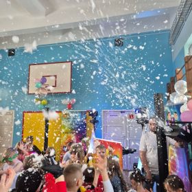 Nie zabrakło wspaniałych zabaw i konkursów z nagrodami, w których mali uczestnicy mogli się wykazać kreatywnością i sprawnością. A kiedy na sali pojawiły się bańki mydlane, radość dzieci osiągnęła zenit!