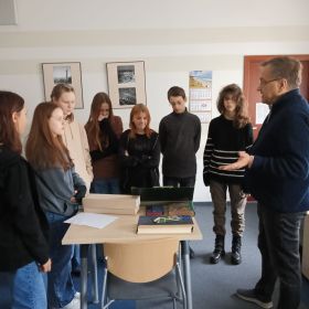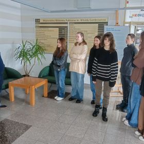 W piątek 9 lutego uczniowie z klasy 7a pod opieką p. B. Sitarskiej wybrali się do Wojewódzkiej Biblioteki Publicznej im. Witolda Gombrowicza. W czasie wycieczki poznali pracę i ofertę wielu działów, z których mogą korzystać czytelnicy, zobaczyli liczącą kilka metrów książkę, obejrzeli unikatowe okazy wydawnictw regionalnych, mieli okazję wyszukać na zabytkowej mapie Kielc miejsce, gdzie obecnie znajduje się nasza szkoła. Przy pomocy bibliotekarzy uczniowie nauczyli się, jak korzystać z katalogów i wypożyczalni online. Uczestnicy wycieczki przekonali się, że Wojewódzka Biblioteka Publiczna to nie tylko wypożyczalnia książek, ale miejsce, gdzie można się wiele nauczyć i ciekawie spędzić czas wolny.