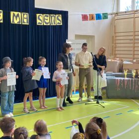 We wtorek 23 kwietnia w Szkole Podstawowej numer 28 w Kielcach odbył się międzyszkolny konkurs taneczny "Dance ma sens". Tego dnia na scenie swoje umiejętności taneczne prezentowali uczniowie klas I-III. Dzieci występowały do własnej muzyki, solo, w duetach i w dużych formacjach tanecznych, prezentując różne style, m.in. hip-hop, dance, modern jazz, disco, jazz. Zachwyt wzbudzały nie tylko efektowne choreografie, ale też barwne stroje i ciekawe elementy sceniczne. Uczennice reprezentujące naszą szkołę w konkursie odniosły sukces zdobywając zaszczytne miejsca. Michalina Kasztan i Nina Marzec z klasy 3b zajęły I miejsce w kategorii duet, natomiast Polina Polishchuk z klasy 2a otrzymała wyróżnienie w kategorii występ solo.