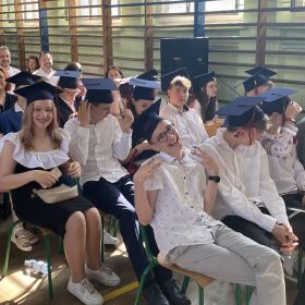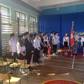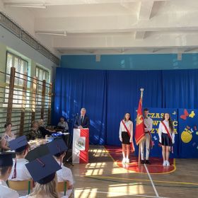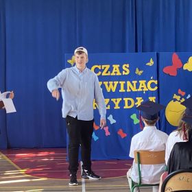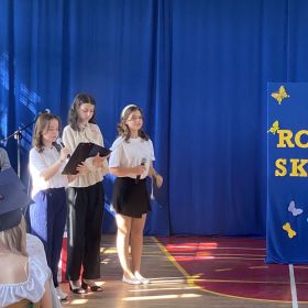 Uroczyście, wzruszająco, nostalgicznie… Tak wyglądało pożegnanie uczniów klas ósmych, które odbyło się na zakończenie roku szkolnego 2022/2023. Spotkanie rozpoczęło się przedstawieniem przygotowanym przez młodszych kolegów pod opieką p. Beaty Sitarskiej oraz specjalnie zaaranżowaną przez p. Małgorzatę Nygę piosenką zaśpiewaną przez dziewczynki z klas IV. Następnie w obecności licznie przybyłych rodziców oraz nauczycieli uczących w tych klasach po raz ostatni została odczytana lista obecności, a uczniowie złożyli ślubowanie. Klasy VIII a i VIII b angażowały się w liczne działania na terenie szkoły, a także wielu uczniów osiągnęło wysokie wyniki w nauce, dlatego też otrzymali z rąk dyrektora szkoły, wychowawców oraz nauczycieli pamiątkowe dyplomy, nagrody książkowe i rzeczowe, a także statuetki. Również rodzicom, którzy wspierali szkołę w jej działaniach, wręczone zostały podziękowania. Wzruszeni uczniowie wyrazili swą wdzięczność za miłe przeżycia i zdobytą wiedzę, a w niejednym oku pojawiły się łzy. Pozwodzenia, ósmoklasiści! Niech nigdy nie zabraknie Wam wiary we własne siły i możliwości.