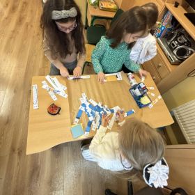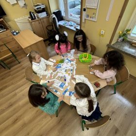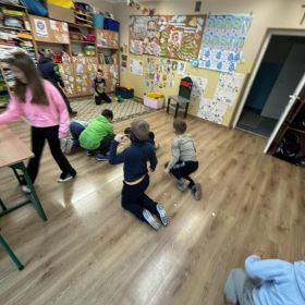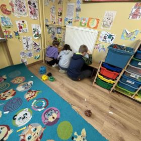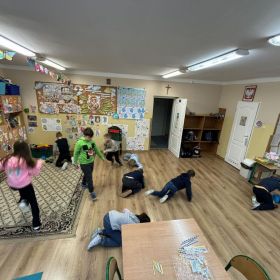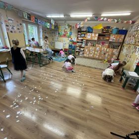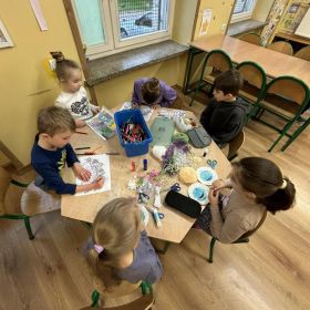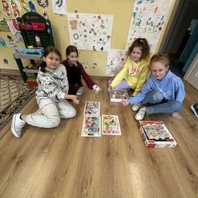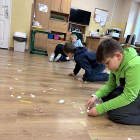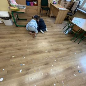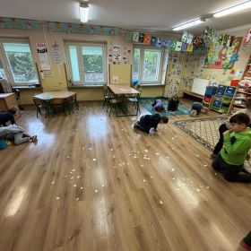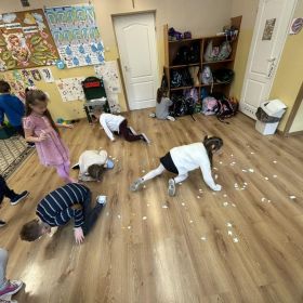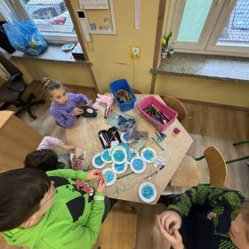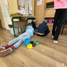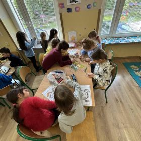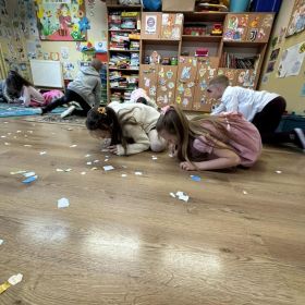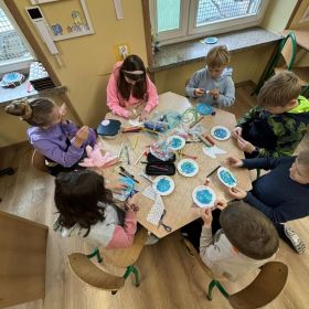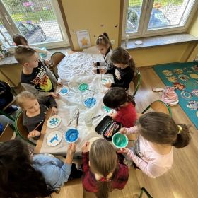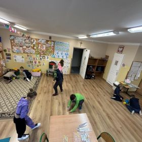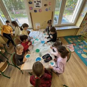 W ubiegłym tygodniu w naszej świetlicy obchodziliśmy Międzynarodowy Dzień Ziemi. W związku z tym przeprowadziliśmy rozmowę dotyczącą potrzeby dbania o naszą planetę, wymieniliśmy współczesne zagrożenia oraz sposoby pomocy w utrzymaniu zdrowego i czystego środowiska. Dzieci podzieliły się sposobami dbania o naszą planetę, które praktykują w życiu codziennym; wykonały plakat z wykorzystaniem puzzli tematycznych, malowały Ziemię na papierowych talerzykach farbkami musującymi, jak również wykazały się wiedzą dotyczącą segregowania śmieci do odpowiednich koszy na śmieci. Dużą popularnością cieszyła się zabawa logopedyczna kształtująca prawidłowy oddech, polegająca na umieszczaniu (za pomocą słomki) rozsypanych po naszej sali śmieci w kolorowych koszach. Była to gra zespołowa, w wyniku której jedna z drużyn otrzymała na koniec słodkie upominki.