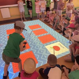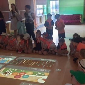 - gry, zabawy i ćwiczenia na podłodze interaktywnej na korytarzu I piętra