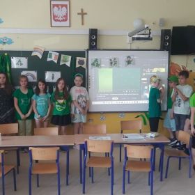 Wszystkie dzieci zostały też zaproszone na poczęstunek oraz obdarowane balonikiem z nazwą naszej szkoły i czterolistną koniczynką na szczęście.