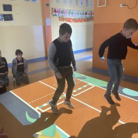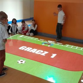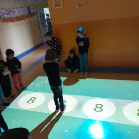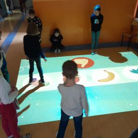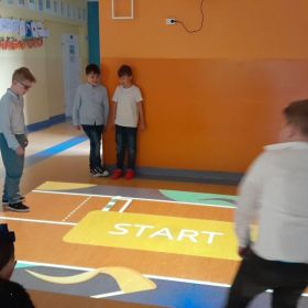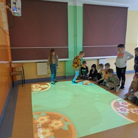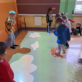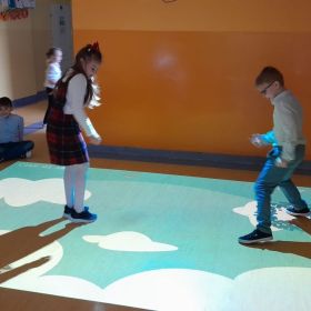 Z ogromną przyjemnością pragniemy poinformować, że zainstalowaliśmy w naszej szkole PODŁOGĘ INTERAKTYWNĄ. Specjalny pakiet animacji skierowany do najmłodszych jest przygotowany pod kątem edukacji poprzez zabawę, co pozwala na atrakcyjną formę prowadzenia zajęć i zachęca dzieci do nauki w ruchu dzięki czemu szybciej przyswajają nowe wiadomości. Podłoga świetnie sprawdza się w czasie zajęć dydaktycznych, na lekcjach w-fu jak również podczas przerw śródlekcyjnych, gdzie klasy 1-3 wspólnie integrują się podczas zabaw.