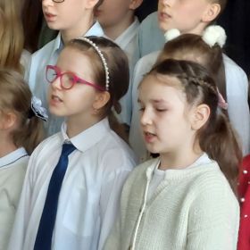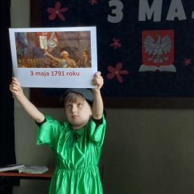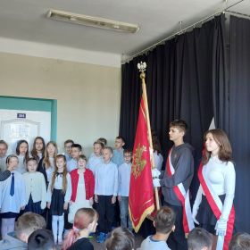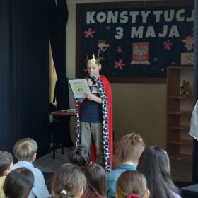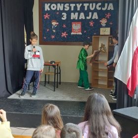 Również w naszej szkole 26 kwietnia 2024 r. odbyła się uroczysta akademia upamiętniająca uchwalenie Konstytucji 3 Maja. Uczniowie klasy IV b, Kacper Szenfer z klasy VIII b oraz chór szkolny poprzez montaż słowno-muzyczny starali się przybliżyć widzom to ważne wydarzenie. Mieliśmy okazję do chwili refleksji nad tym, co kiedyś się wydarzyło i zobaczyliśmy, jak ważna była postawa patriotów starających się poprzez reformy ratować kraj przed zaborami. Przedstawienie spotkało się z ciepłym przyjęciem publiczności.