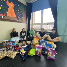 Samorząd Uczniowski oraz świetlica szkolna w tym roku szkolnym (podobnie jak w ubiegłych) zaangażowała się w zbiórkę rzeczy dla Schroniska w Dyminach. Przez cały listopad uczniowie klas 0-8 przynosili do świetlicy suche i mokre karmy, przysmaki, akcesoria: miski, podkładki, drapaki, łopatki, zabawki, koce. Celem tego przedsięwzięcia była poprawa standardu pobytu zwierząt w schronisku, kształtowanie postawy empatii wobec zwierząt oraz wdrażanie dzieci i osób dorosłych do aktywnego udziału w akcjach charytatywnych. W ostatnich dniach listopada opiekun Samorządu zawiózł dary do schroniska. Wszystkim bardzo dziękujemy za zaangażowanie. Los bezdomnych, porzuconych zwierząt nie jest obojętny dzieciom z naszej szkoły. Mamy nadzieję, że zgromadzone dary sprawiły radość kotkom i pieskom.