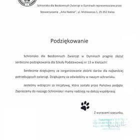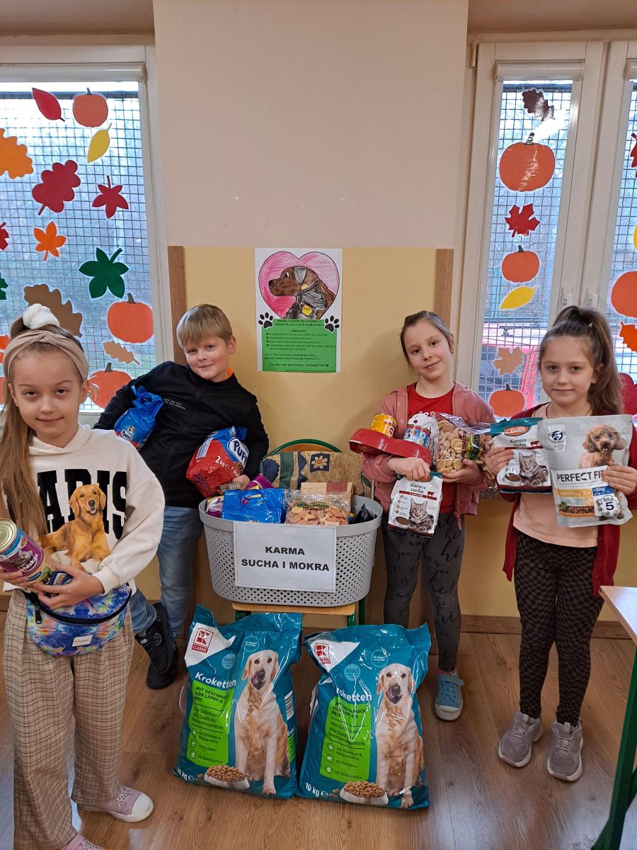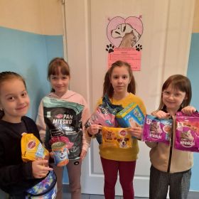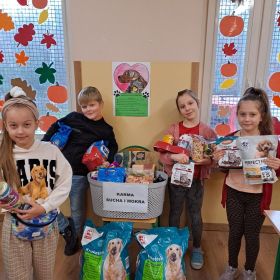 W listopadzie prowadziliśmy zbiórkę darów na rzecz Schroniska dla Bezdomnych Zwierząt w Dyminach. Do akcji przyłączyły się nie tylko Świetliczaki, ale także dzieci z oddziału przedszkolnego i uczniowie klas 4-8. Udało nam się zebrać kilkadziesiąt kilogramów karmy suchej i mokrej oraz przysmaków, a także liczne akcesoria dla psów i kotów: miski, obroże, zabawki, ubranka, koce. Serdecznie dziękujemy wszystkim za ogromne zaangażowanie w zbiórkę!
